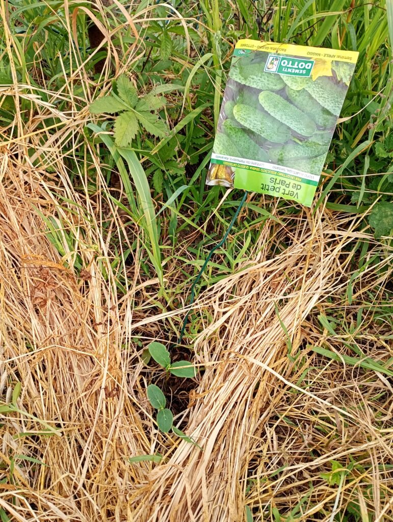 Il 10 Giugno ho coltivato anche dei cetriolini. 4 nidi vicino al ricinto, per consentirli di arrampicarsi sopra. Ho messo 2 semi nuovi e una decina di semi vechi, scaduti, per liberarmi di loro e per vedere se germinano ancora.