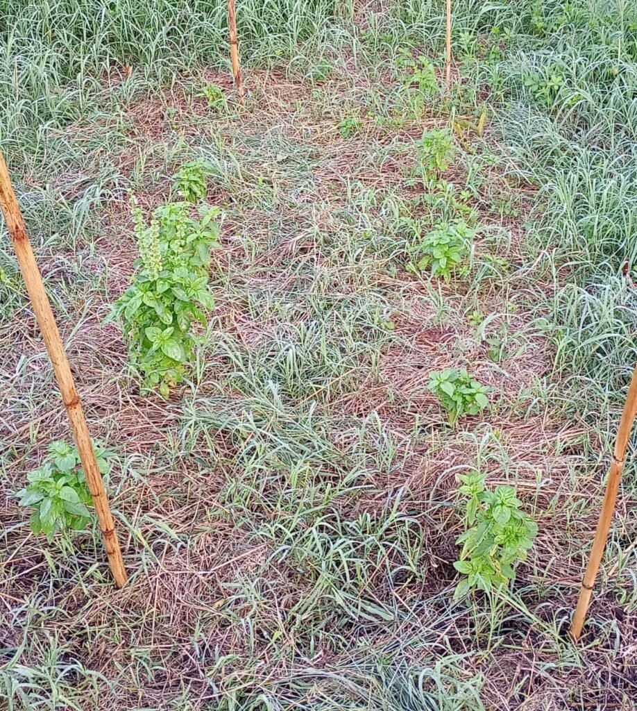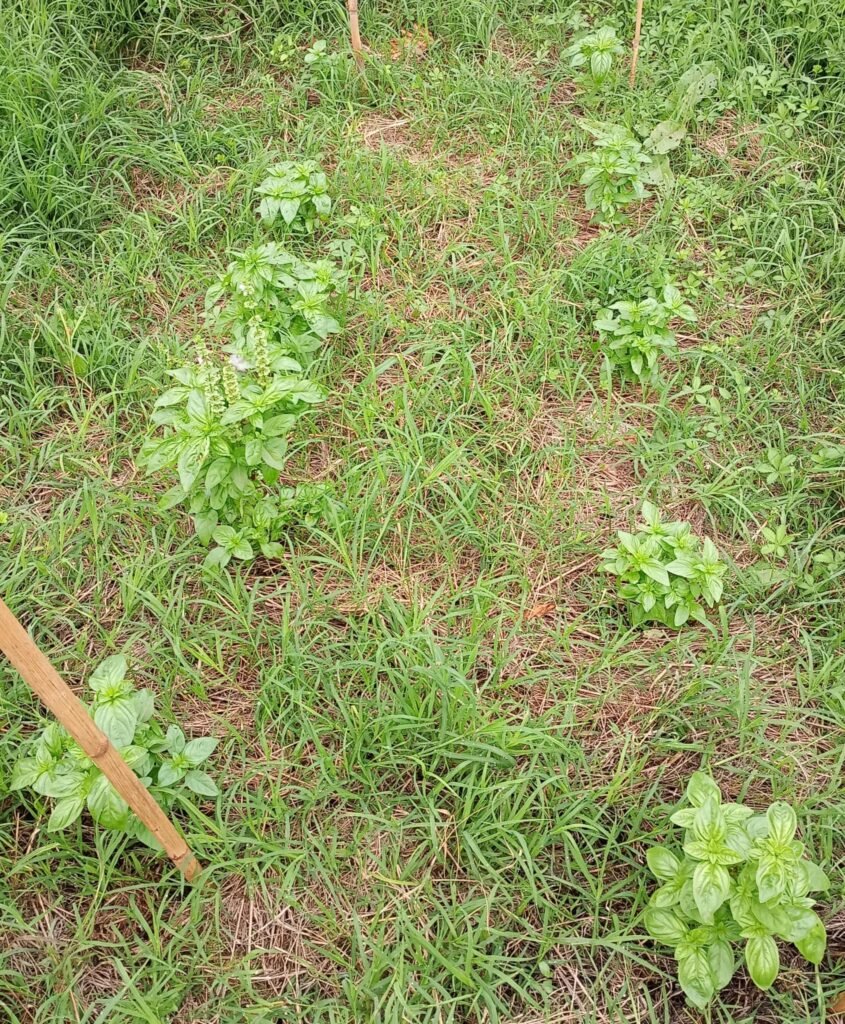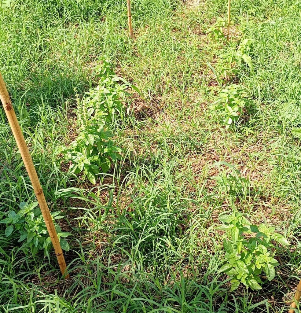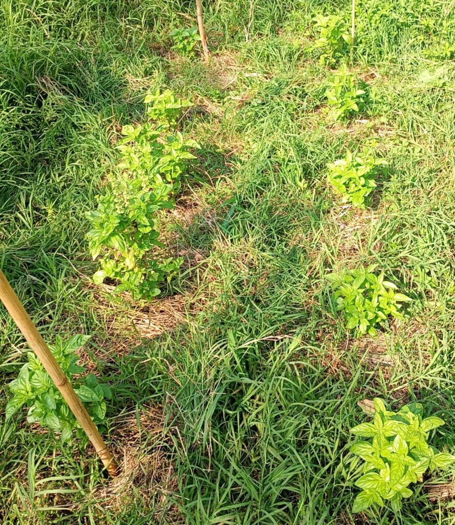 Aggiornamento 24 Giugno: A 1 mese e mezzo dalla semina, ho trapiantato le piante di basilico nel mio angolo di paradiso! 2 file di 6 piantine ognuna. Stavolta sono riuscito a metterli un po’ di fieno già dal primo momento, in quanto l’erba falciata in precedenza si è seccata nel frattempo, diventando fieno autoprodotto!