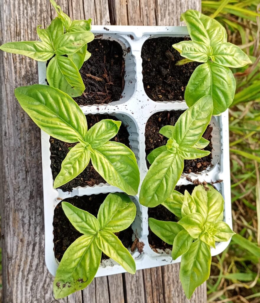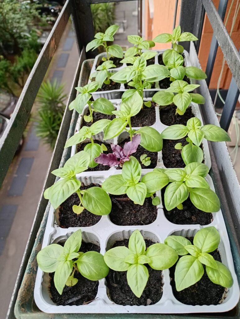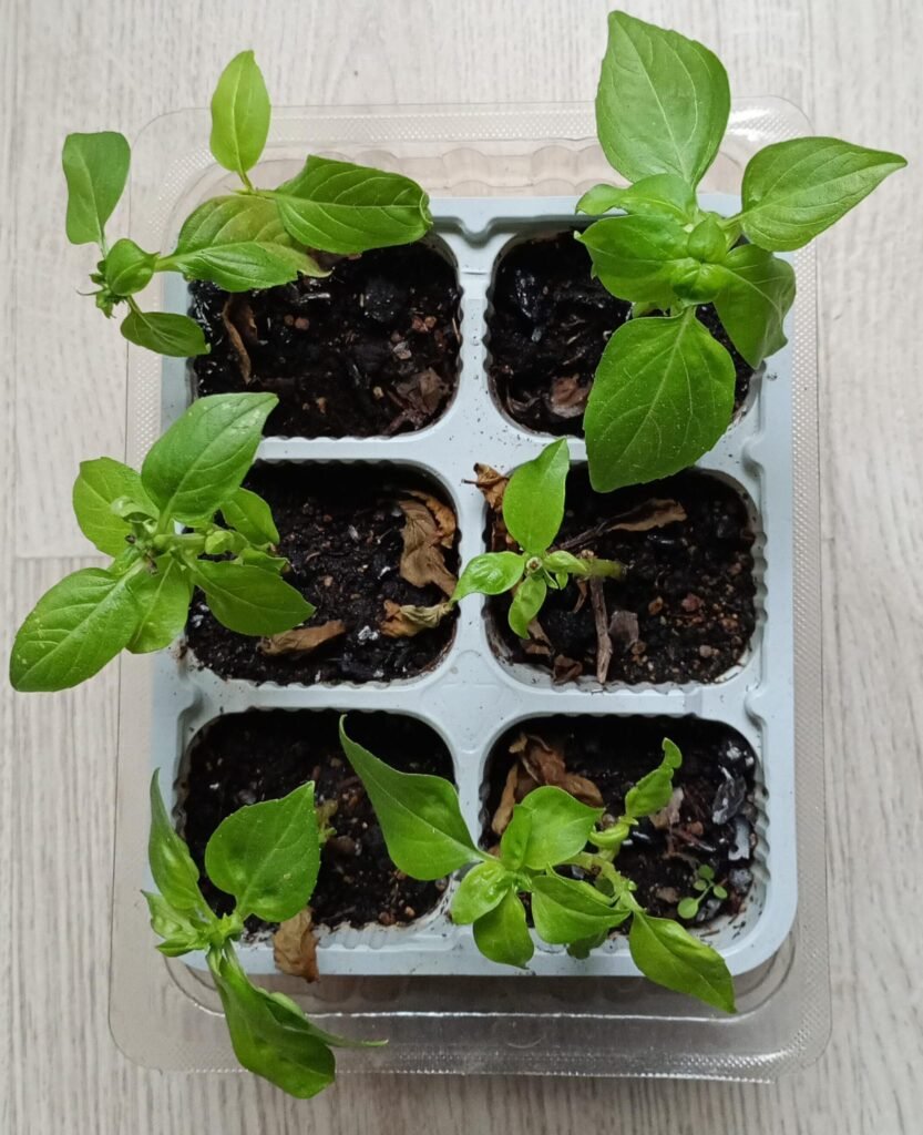Il 5 Maggio, ho seminato basilico nei vasetti. Siccome avevo 3 tipi di semi di basilico, li ho seminati in 3 vaschette diverse: