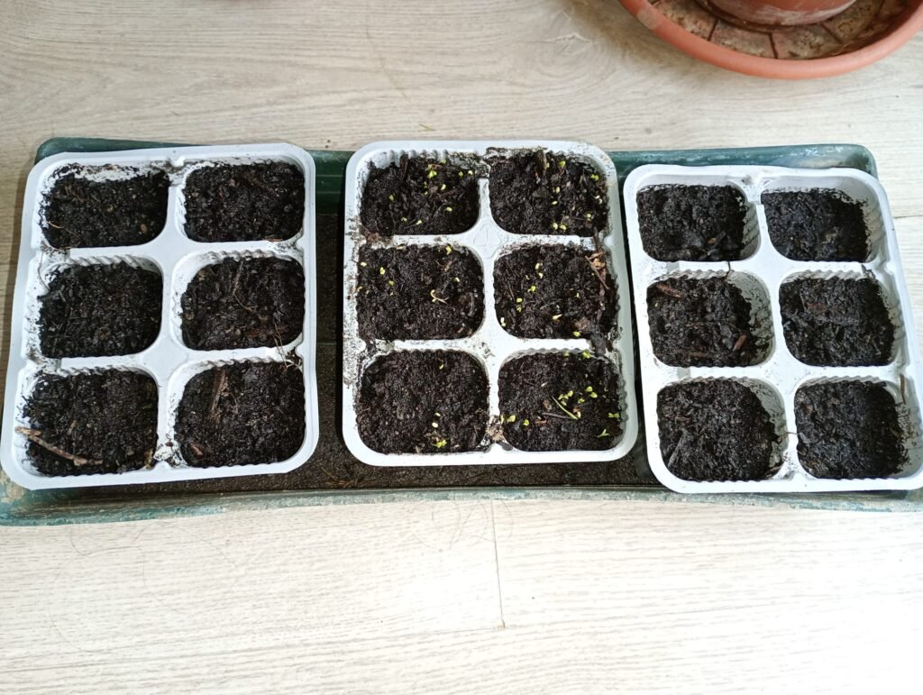 Aggiornamento 21 giugno: in un nido sono uscite 4 piantine e in un altro una. Ho trapianto una delle 4 piantine in un nido vuoto.