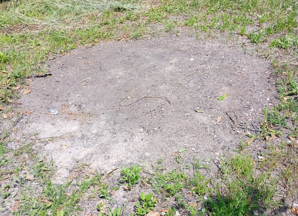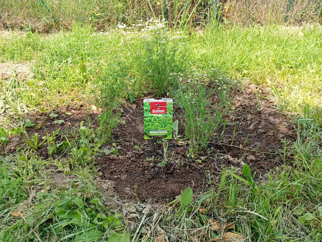 Nell’orto c’era una zona dove probabilmente in passato si facevano le grigliate, e la terra era bruciata e non cresceva neanche l’erba. C’erano solo 3 piantine di camomilla che erano cresciute lì per miracolo. Un po’ così: