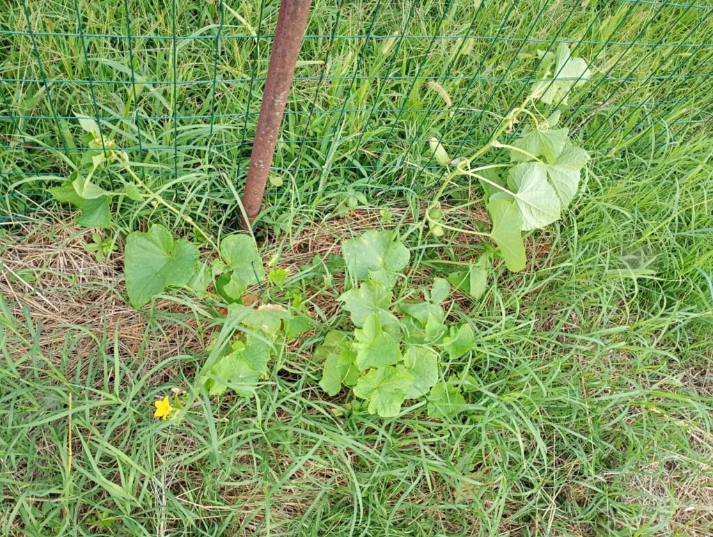 Il 10 Giugno ho coltivato anche dei cetriolini. 4 nidi vicino al ricinto, per consentirli di arrampicarsi sopra. Ho messo 2 semi nuovi e una decina di semi vechi, scaduti, per liberarmi di loro e per vedere se germinano ancora.